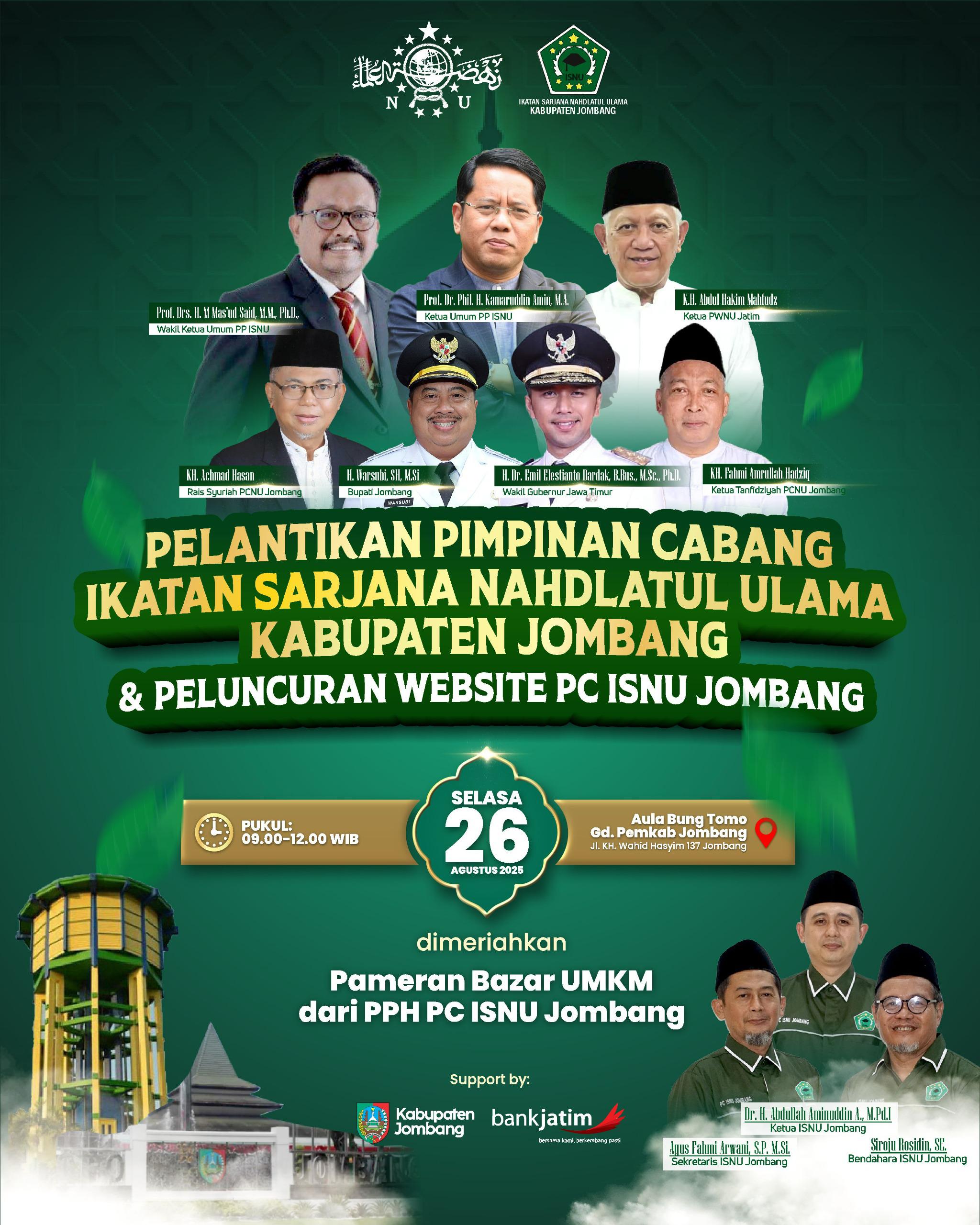 PC ISNU Jombang Masa Khidmat 2025–2029 akan dilantik pada: